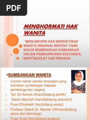 Menghormati hak wanita tanggungjawab bersamapepatah melayu mengatakan 'tangan yang menghayun buaian juga mampu menggoncangkan dunia'. • pemimpin wanita tidak boleh. Topik 25 menghormati hak wanita ppt download. Melindungi dan mengiktiraf wanita sebagai individu yang boleh memberi sumbangan dalam pembangunan keluarga, masyarakat dan . Kerja kursus moral docx kerja kursus pendidikan moral 1225 2 . Tidak dibezakan kedudukan dan layanan dengan kaum lelaki.